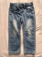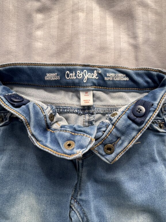 Jeans talla 2, color azul deslavado. Entubados. Con botones para ajustar cintura.