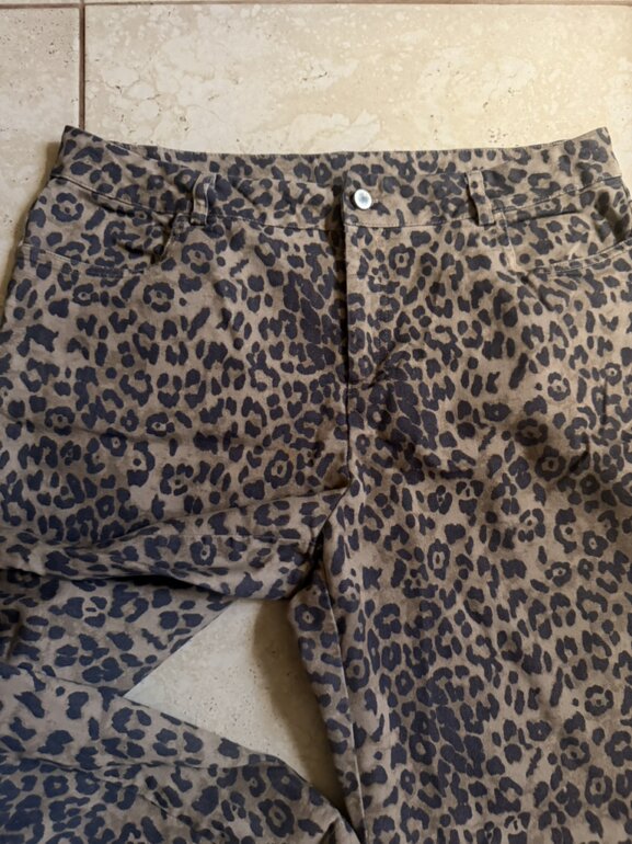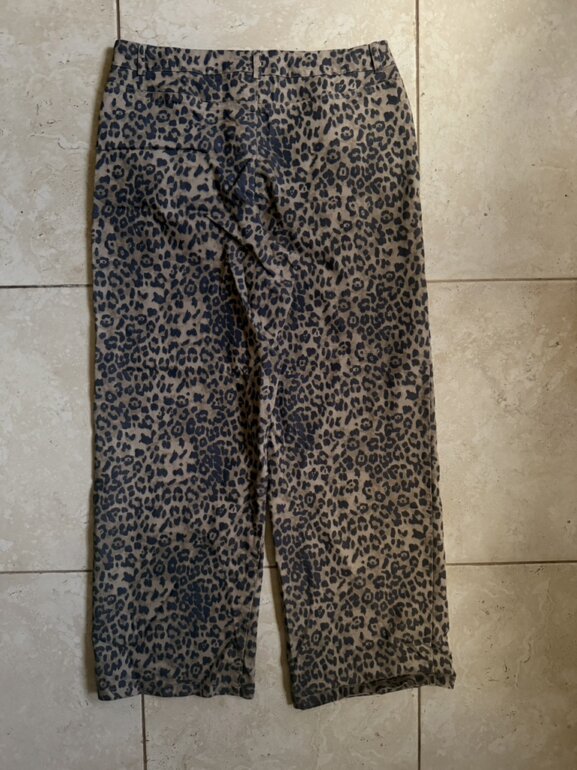 Tela delgada , Stretch . Medidas : cintura 86 cms , tiro 30 cms , cadera 114 cms , largo 103 cms