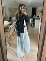 Jeans wide leg de mezclilla clara con lavado vintage, súper trendy y cómodos. Corte amplio que estiliza la pierna y queda increíble con tops ajustados o oversized.