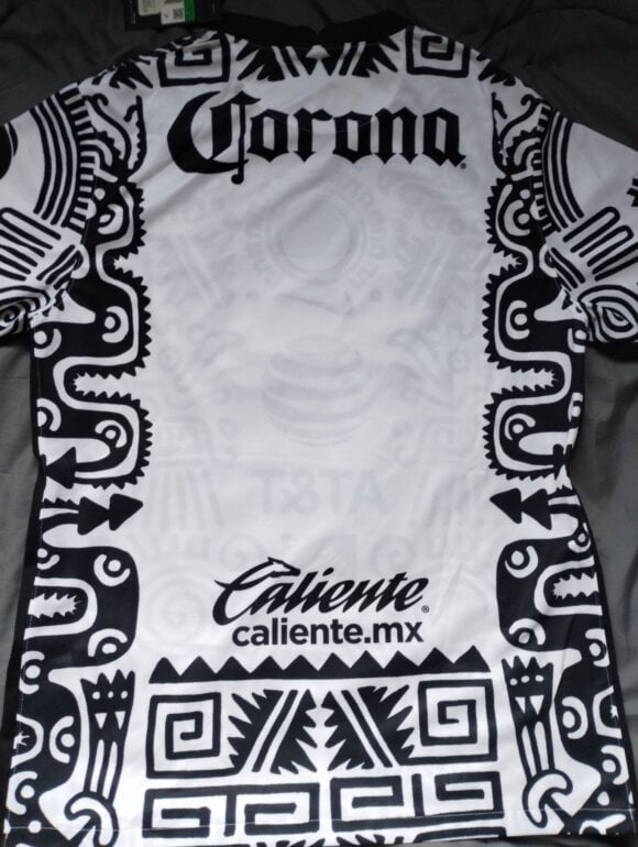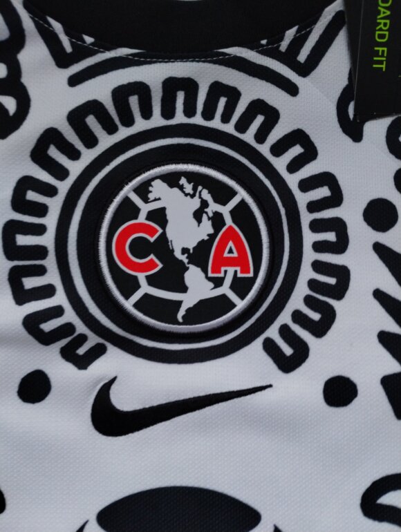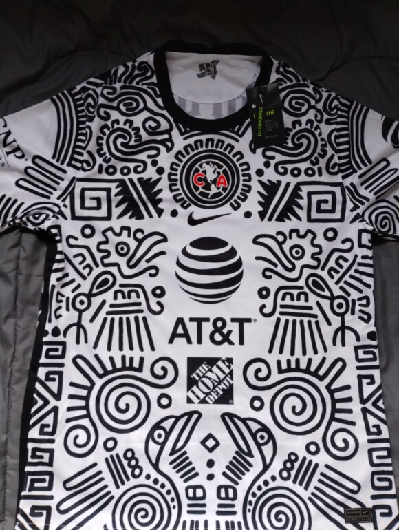Bonito jersey Alternativo Club América, año 2021, homenaje al icónico jersey " Caballero Aguila" usado por Guillermo Ochoa. Color blanco con jeroglíficos en color negro
