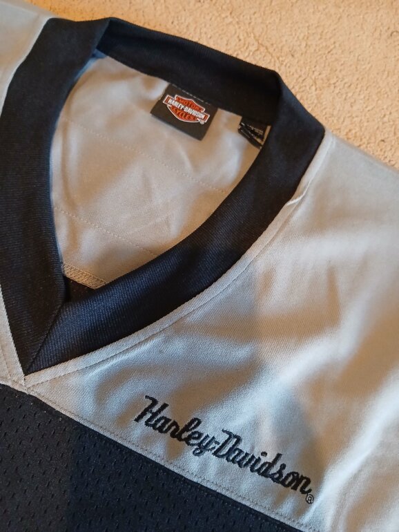 Jersey harley davidson talla 3xl/4xl (no trae talla ) ❌️mide 78cm de axila /axila❌️ colores gris con negro , bordado en manga y en espalda
