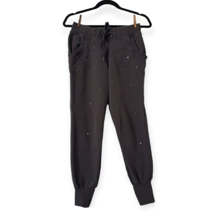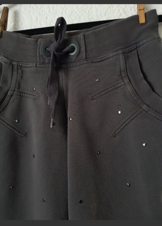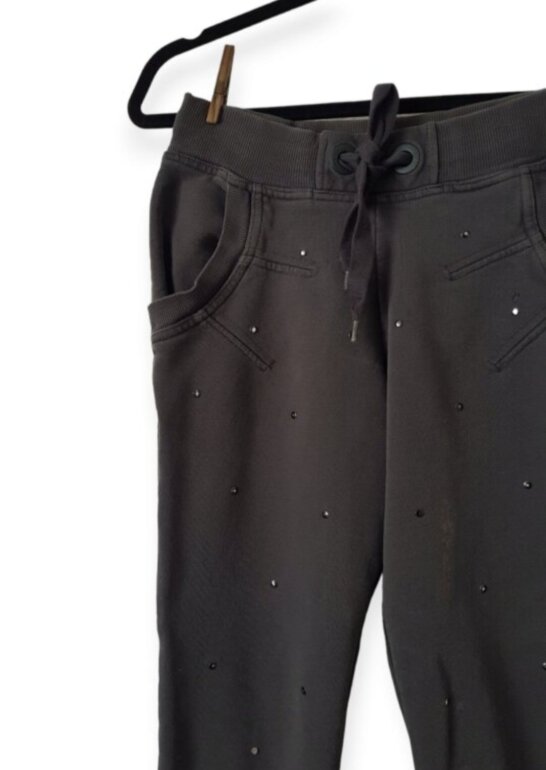 Jogger marca adidas designed by Stella McCarthey gros oxford (deslavado) con detalle de estoperoles, cintura elastica ajustable, tiene una manchita en la pierna la puedes mirar en la foto talla S pero va bien a la M también. Se le han caído algunos estoperoles y el color de la prenda siempre fue gris deslavado. Cualquier duda estoy aquí 🥰