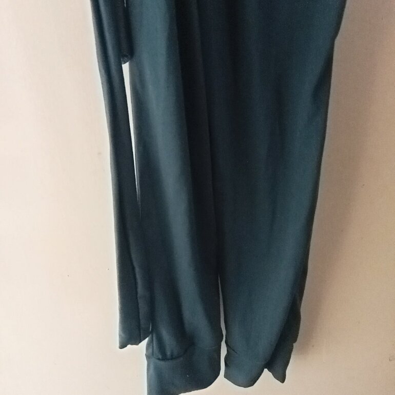 Jumpsuit color turquesa manga 3/4. De tela de camiseta, cuello V, panta entubada con resorte en la parte inferior de la pata. Con resorte en cintura, jareta para marcar cintura y dos bolsas.