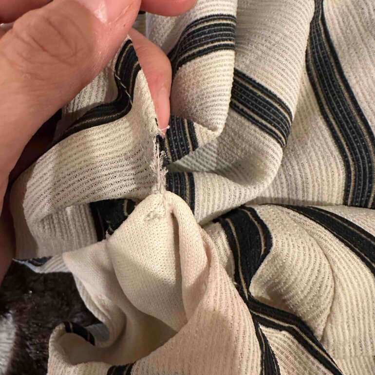 En la última foto se ve un deshilachado en el olan De la manga. No está roto solo se ven hilitos.