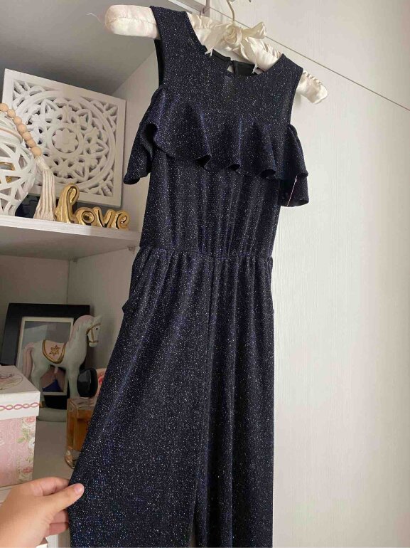 ¡Padrísimo! Jumpsuit azul marino con shimmer|destellos de diamantina que hacen que luzca increíble en la noche ✨✨.