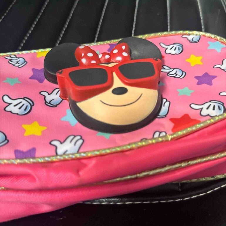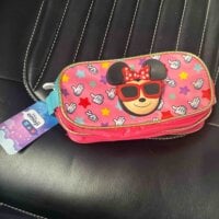 Lapicera para niña de la marca ATM packs en colaboración con Disney emoji, viene en material tela con la figura de Minnie en relieve y de squeeze, cuenta con doble cierre y se encuentra completamente nueva