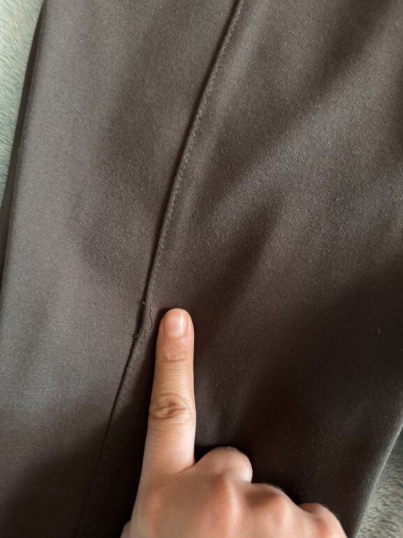 Trae mini detalles en ambas piernas, no afecta su uso para nada, casi n ose percibe