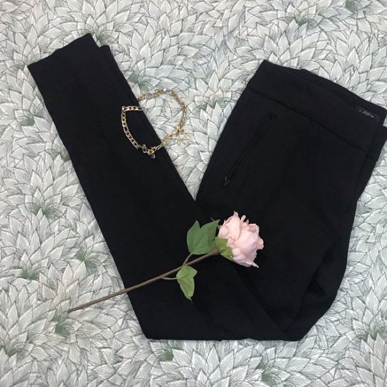 Leggings clásicos, estilo formal o semi formal según la prenda con la que los combines. Son súper cómodos, llegan arriba de la cintura. Talla 4 petite que queda a un S. No tienen ningún detalle
