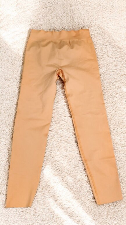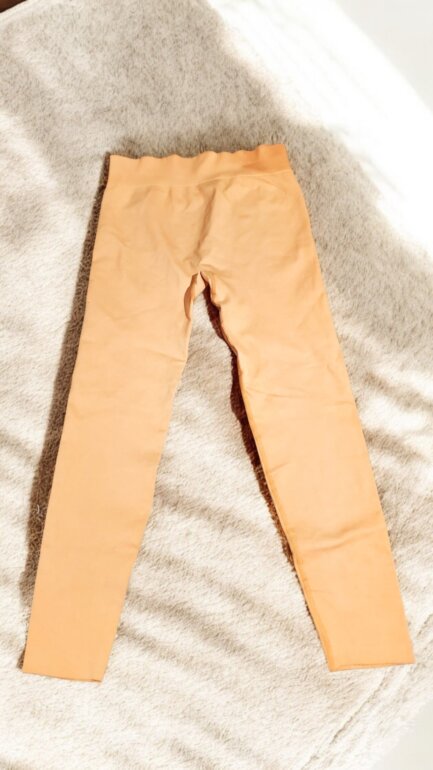 Leggins anaranjado, no tiene etiqueta de talla ni marca, es de compresión, aproximadamente talla M.