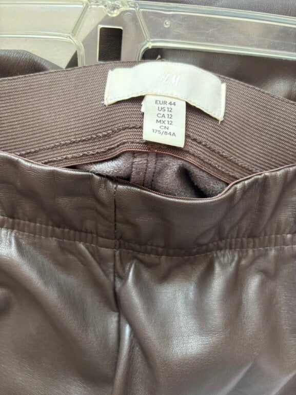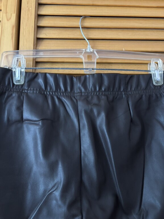 Leggins cafés con resorte invisible en la cintura y pinzas en las pompas para acentuar la figura. Acabado de tubo sin dobladillo. Talla 12