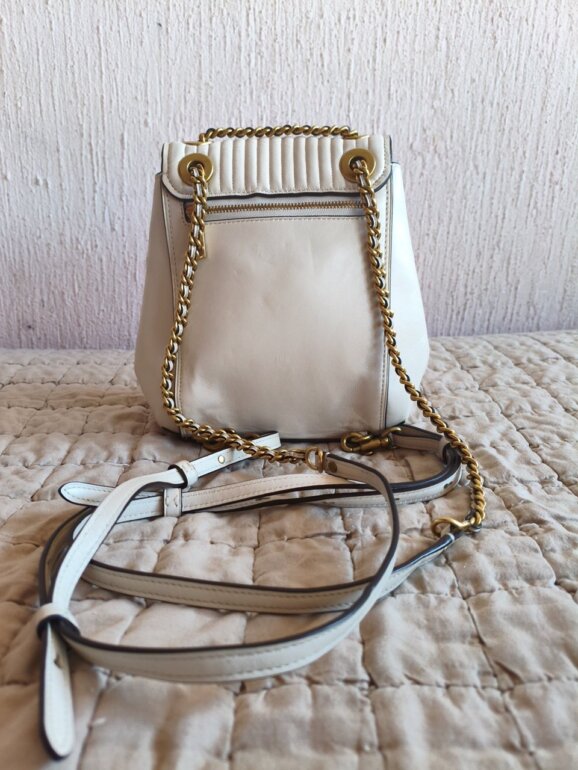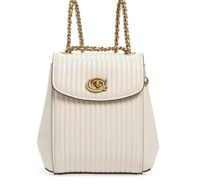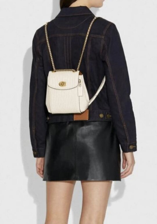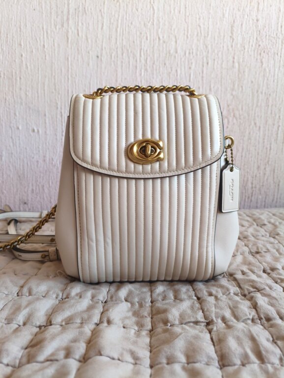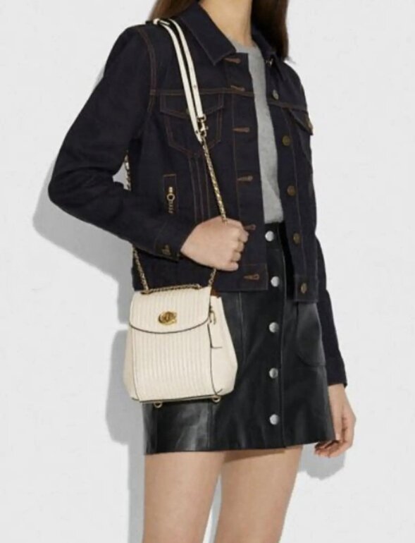 Coach Parker Convertible Backpack, Mini mochila/bolso coach de piel, color hueso, con acolchado al centro