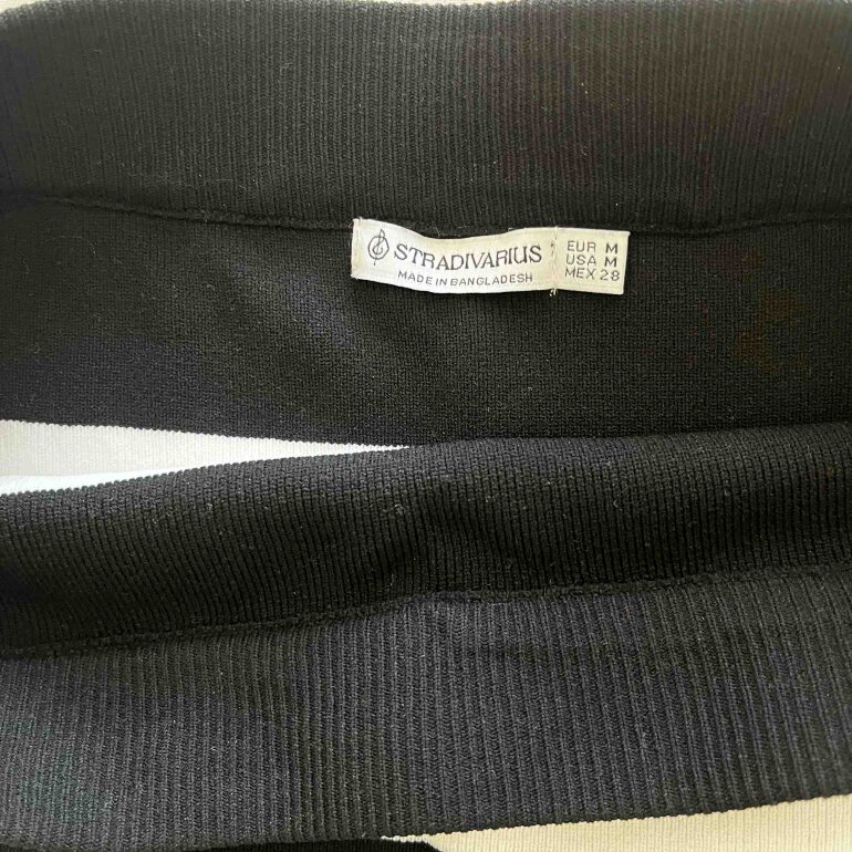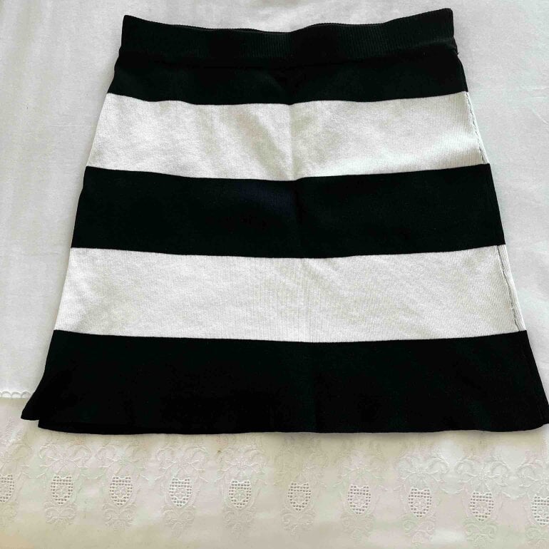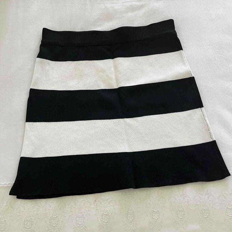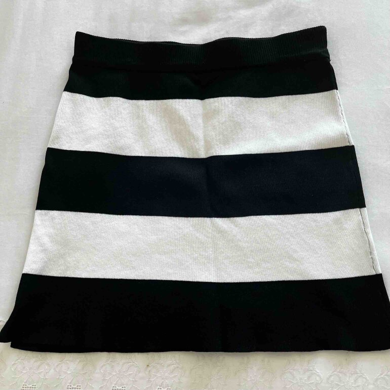 Mini falda de rayas blanco con negro de punto. Nunca usada, sin detalles, mide 70 cm de cintura, 40 cm de cadera y 40 cm de largo.