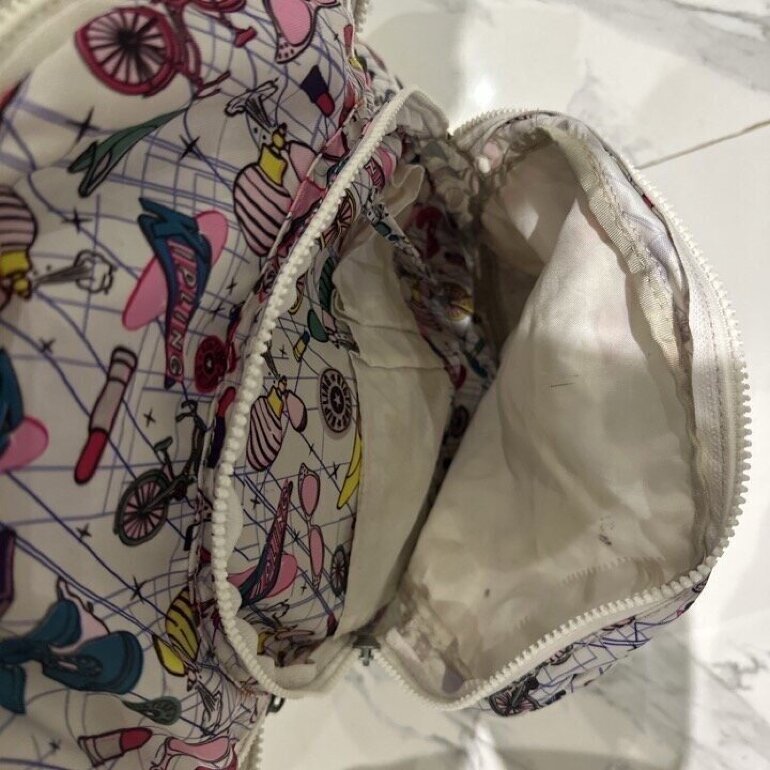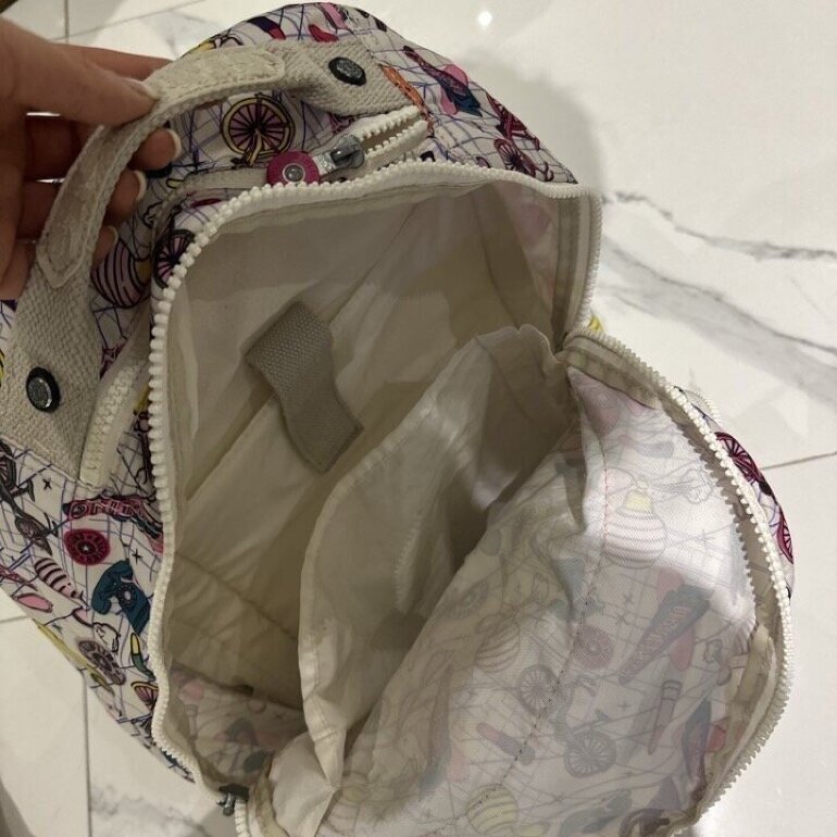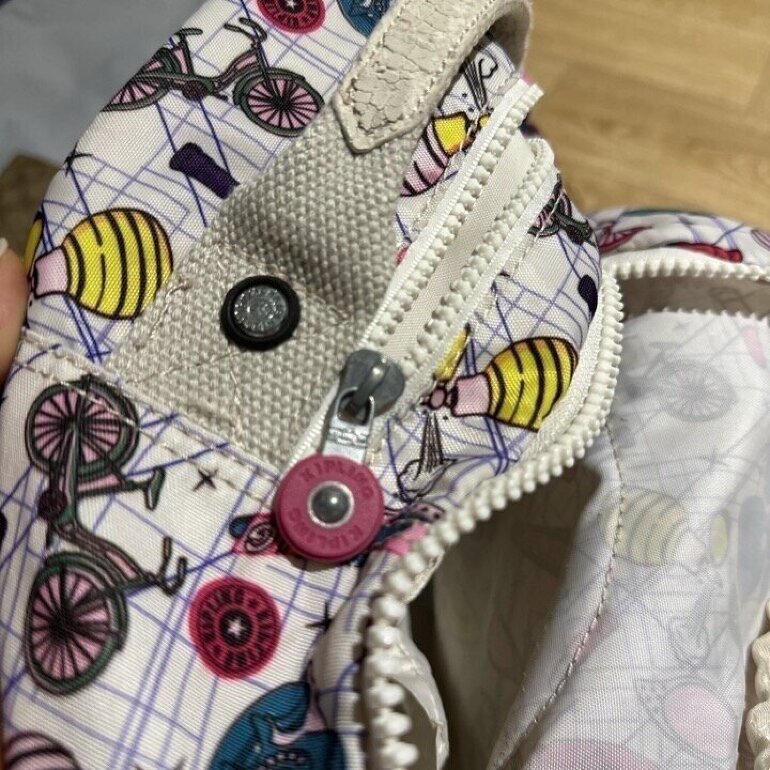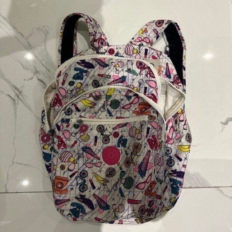 Mochila Kipling con sticker impresos y guarda computadora incluida en perfectas condiciones