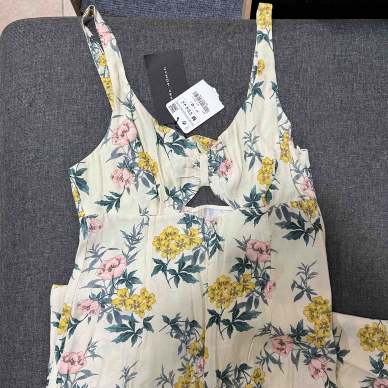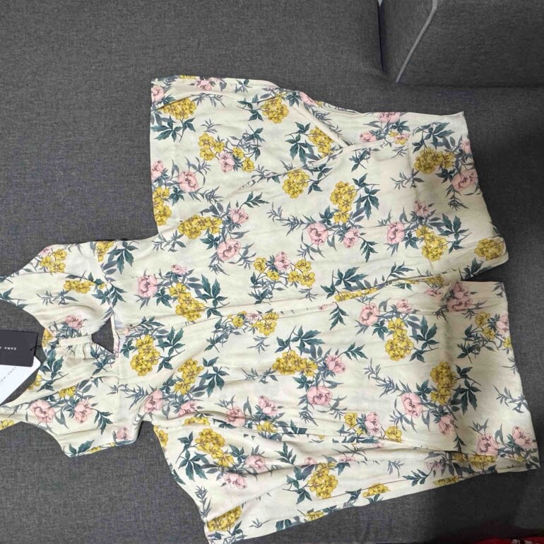 Mono floreado Talla M floreado completamente nuevo con etiquetas, el pantalón es flojo y muy largo. Es de viscosa, tela muy delgada , tiene un detalle en el cierre que se debe coser
