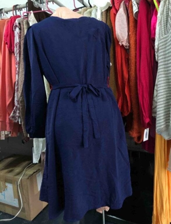 Vestido vintage color azul de manga larga y cuello redondo tiene cintas para que lo ajustes de la cintura talla extra grande de la marca Pw collection
