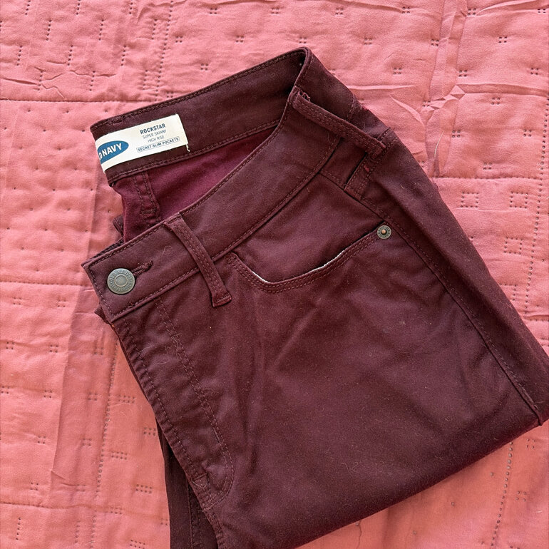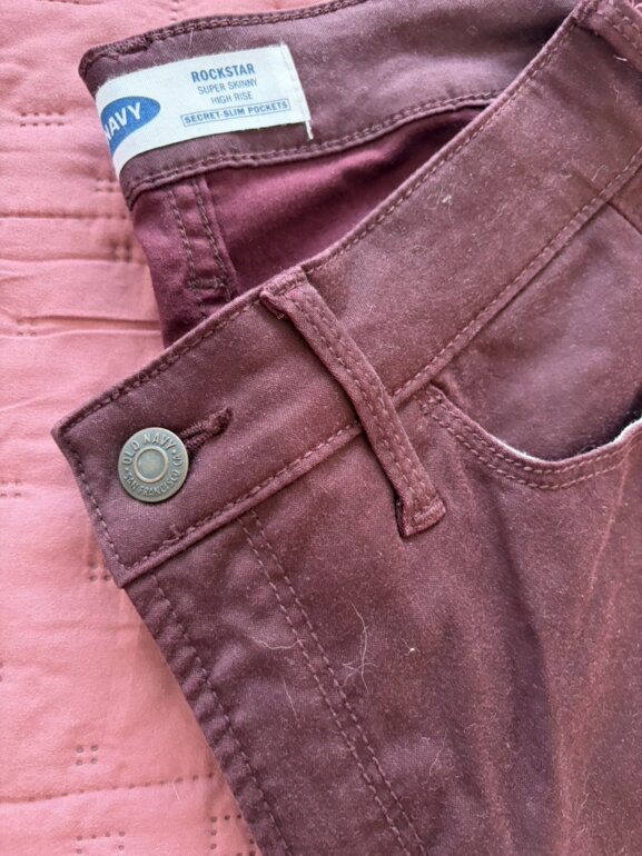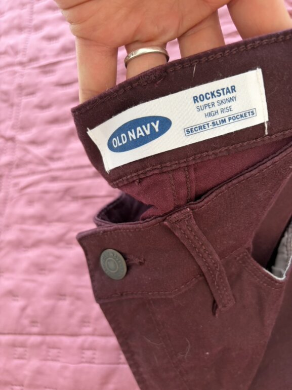 Pantalón old navy color uva rockstar, no recuerdo haberlo usado está muy lindo pero no es mi estilo, no está roto ni en malas condiciones talla 6