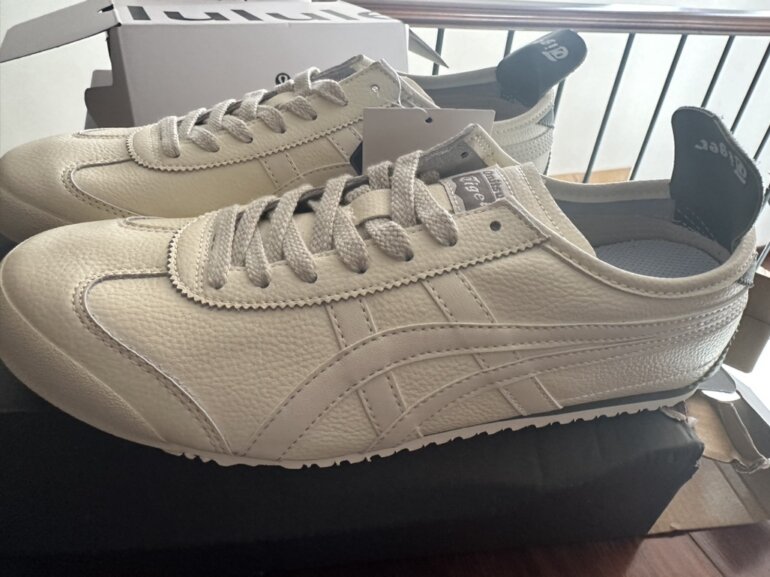 Tenis Onitsuka Tiger originales en tono beige / crema, diseño clásico y elegante.