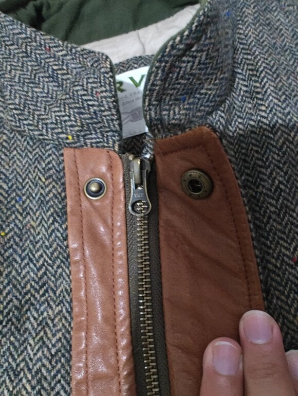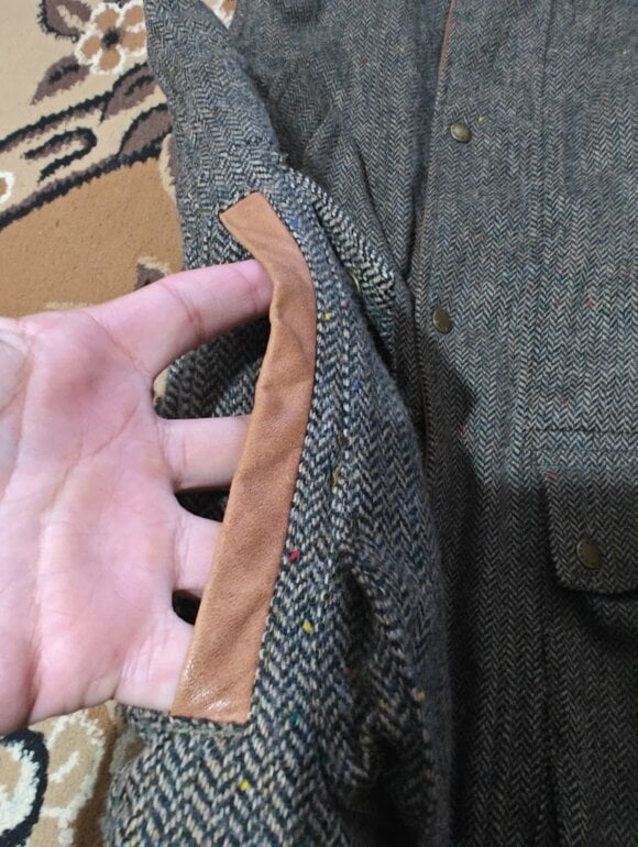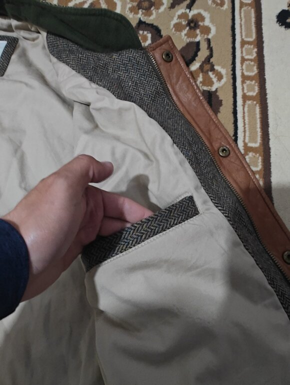 Exterior 100% lana, interior primaloft, detalles en cuero, 56 ancho 75 largo viene algo amplio