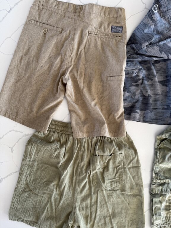Con bolsillos a los lados súper cómodos uno verde olivo es de lino listos para el verano diferentes outfit para un jovencito.