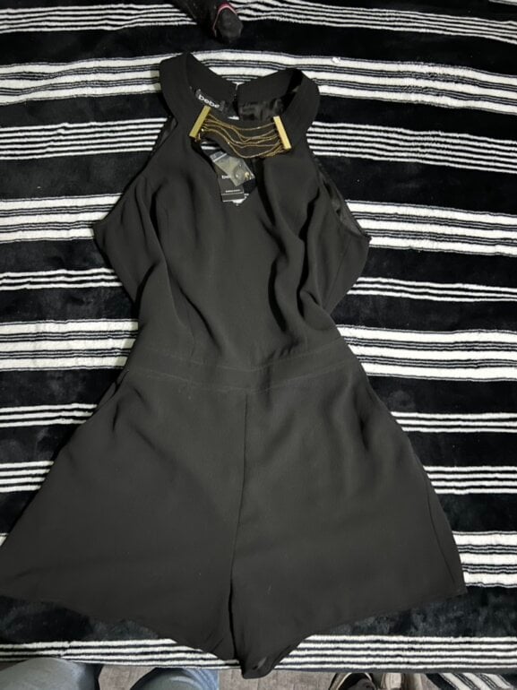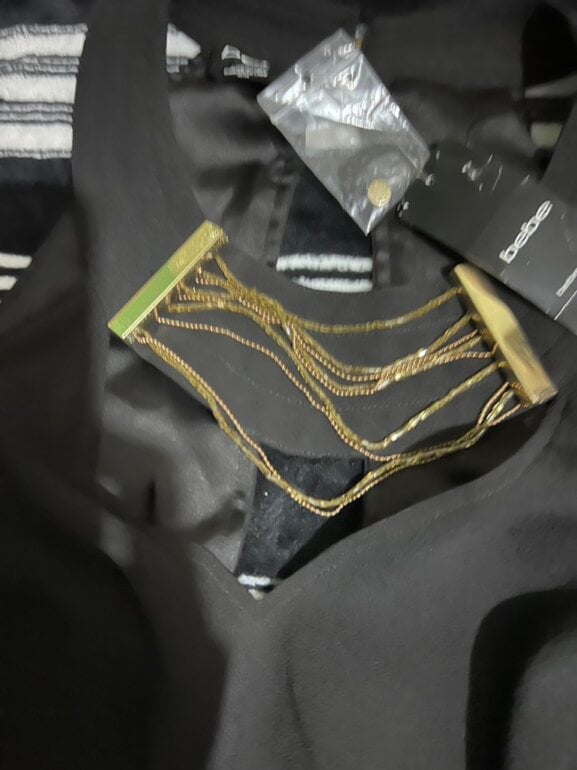 Hermoso palazo negro con collar de chaquira en color oro lo que lo hace resaltar bastante orma muy bonito nuevo a estrenar con etiqueta