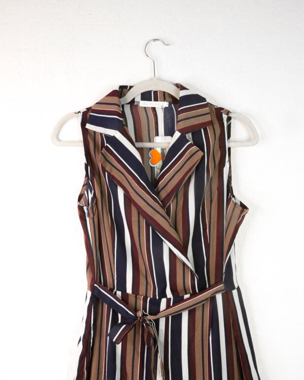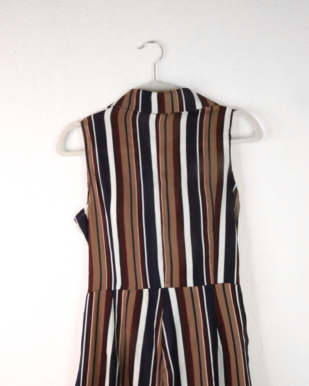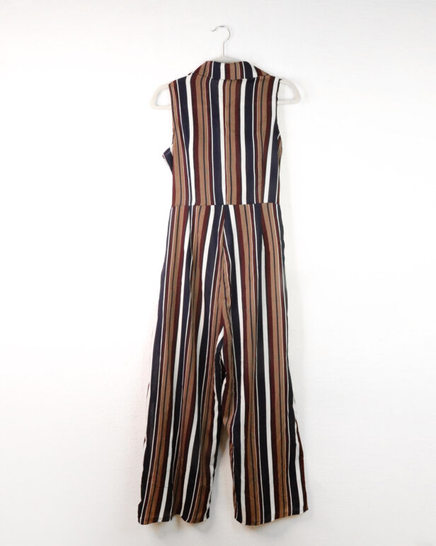 Hermoso palazzo a rayas sin mangas, hace una silueta super linda, tiene cierre lateral y cinturón cocido para ajustar bien la cintura, la pierna es recta y la tela es muy fresquita.