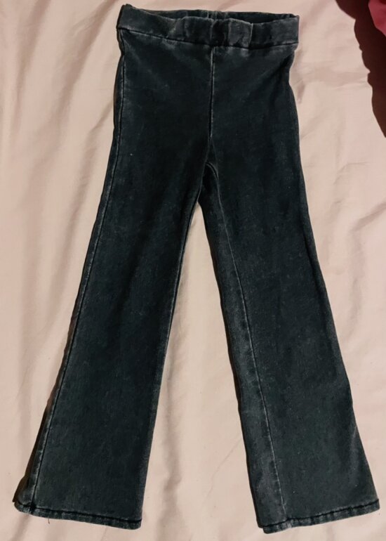 Pantalón acampanado. Color gris degradado efecto mezclilla. Estira.