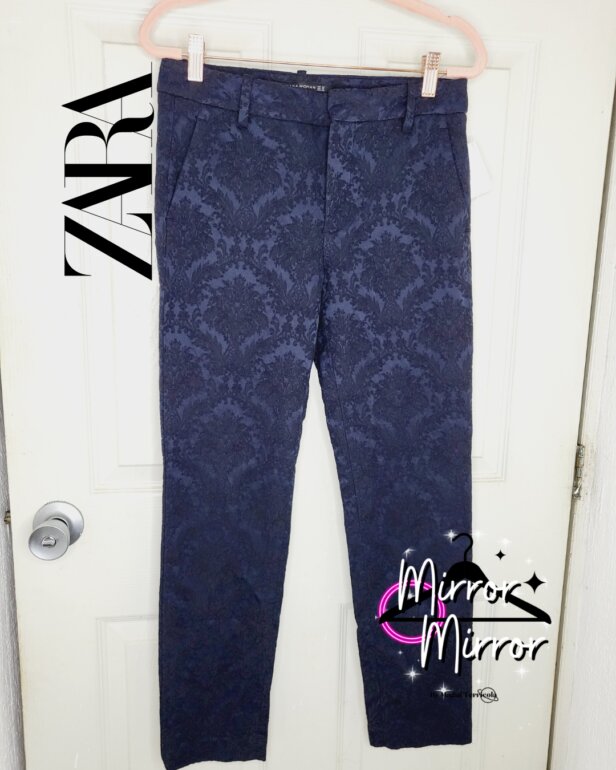 ⭐Pantalon azul marino con detalle de flores tipo bordado. 📏Talla XS. 💝Preloved - Puesto una vez. ✈️Envíos todos los dias.🏷️MMbyMTprl108