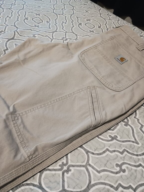 Pantalon de gabardina estilo carpintero, viene amplio y es recto