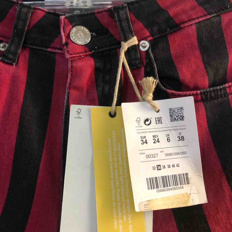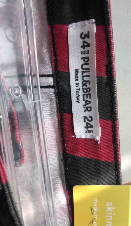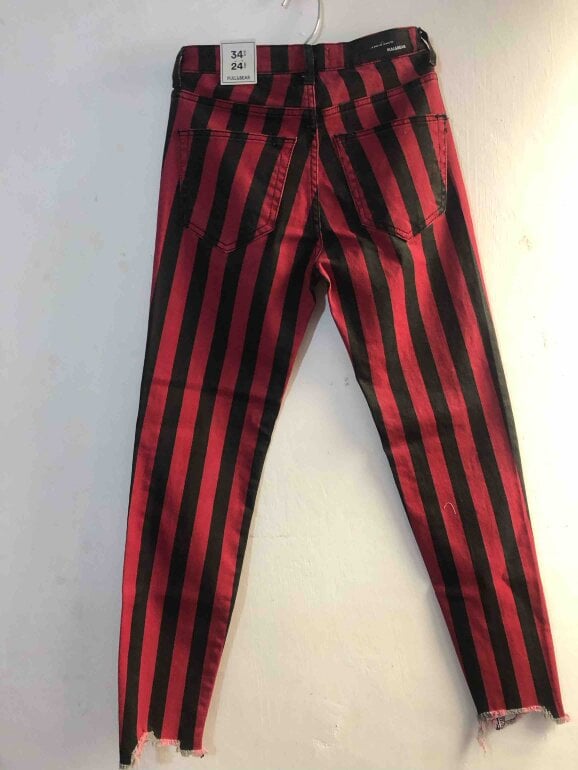 Pantalón de mezclilla skinny pull & bear talla 24 nuevo con etiqueta rallas rojas y negras,98%algodon 2% elestano 65 cm de cintura