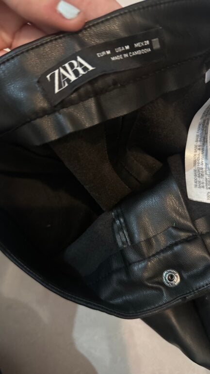 Hermoso pantalón faux leather de zara, con un cierre abajo los puedes abrir o dejar cerrados, está súper cool y en la piel está en súper buen estado no tiene descarapelado nada ni rayado!