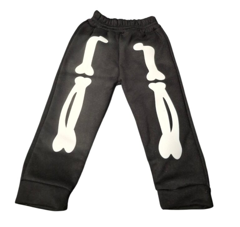 Pants negro con estampado de huesitos, con resorte en la cintura, talla 1 año