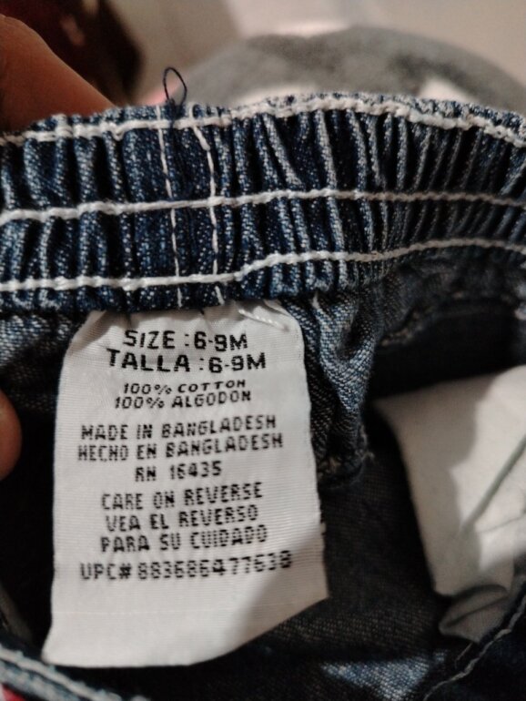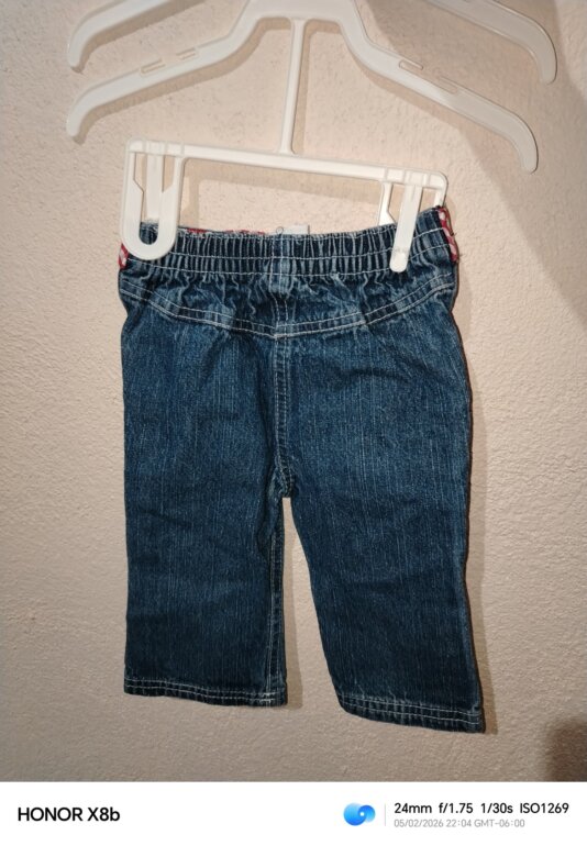 Pantalón de mezclilla con cinto rojo con blanco talla 6-9 meses
