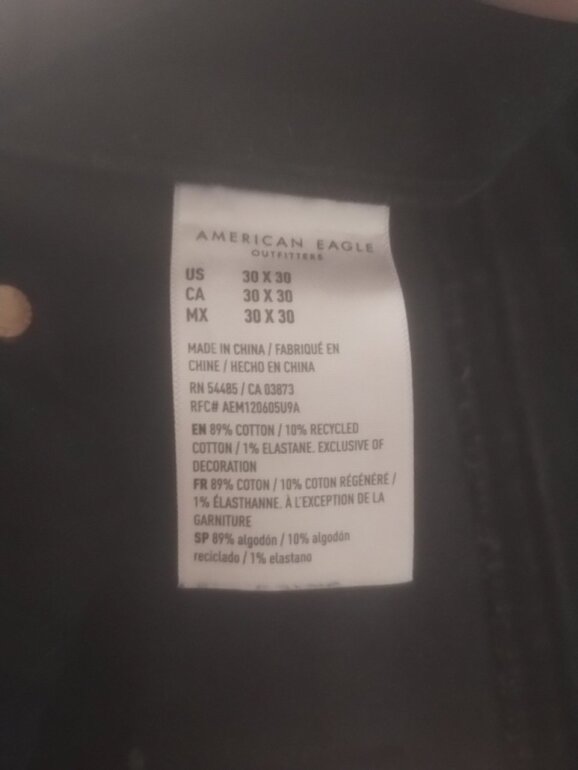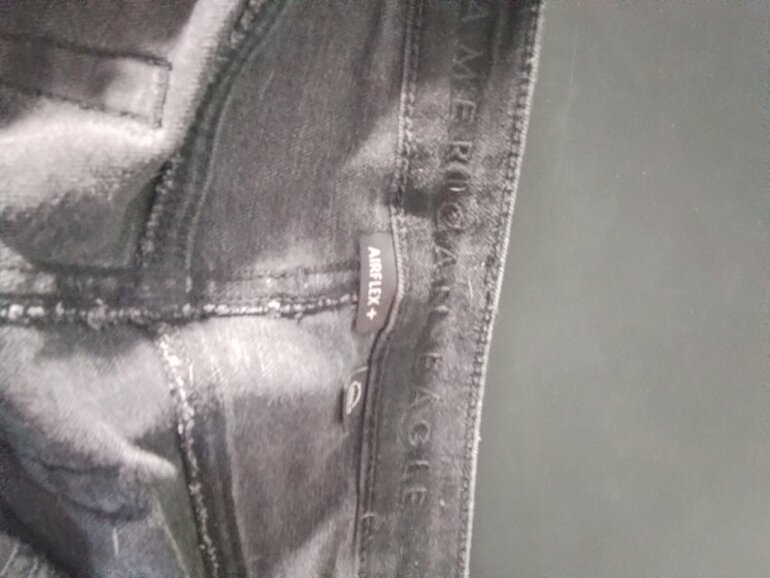 Es un pantalón de Mezclilla color Negro marca American Eagle Seminuevos, sin detalles