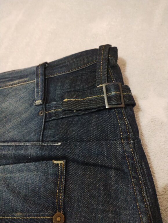 Denim crudo y lavado técnico: Muchos modelos se ofrecen en denim sin lavar (raw denim), que se adapta al cuerpo con el uso. También hay versiones con lavados desgastados, como el que aparece en tu imagen.