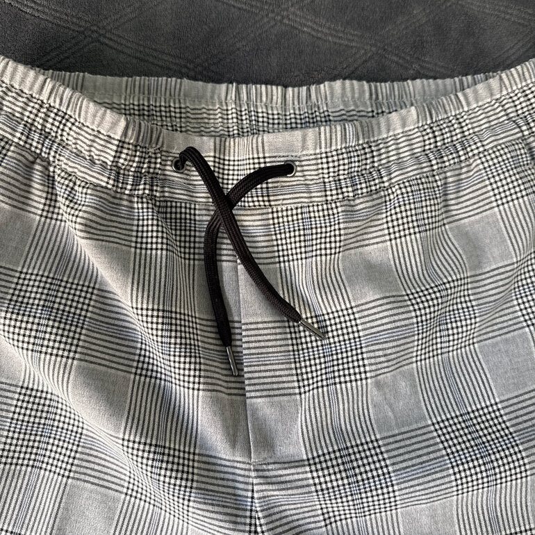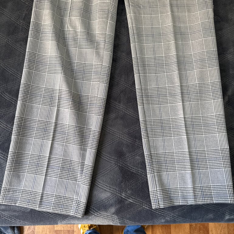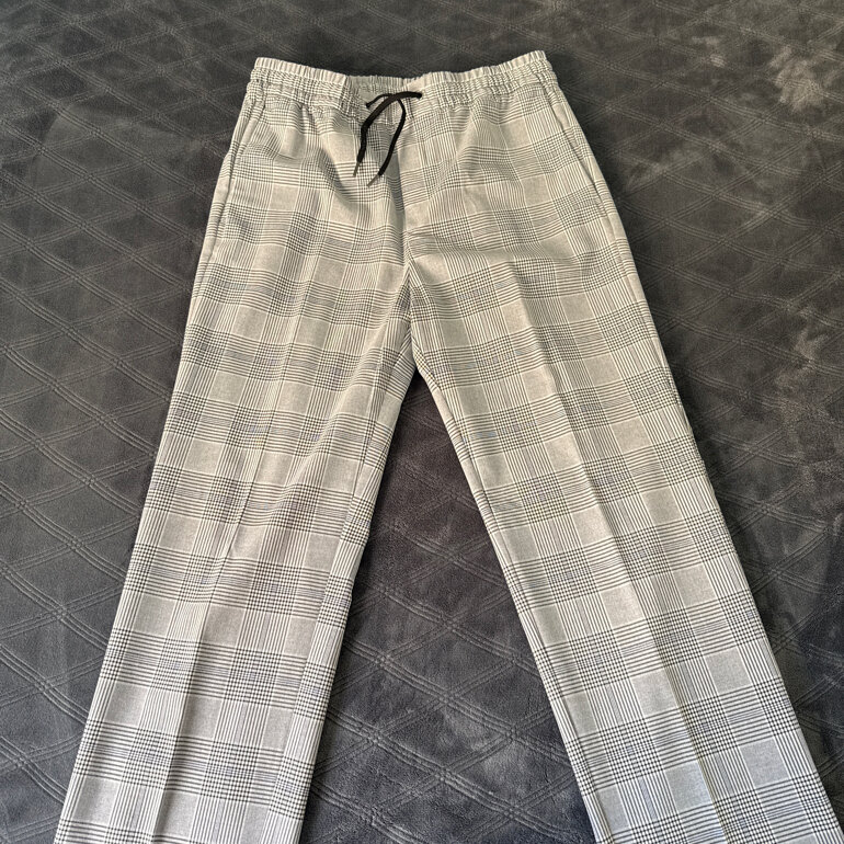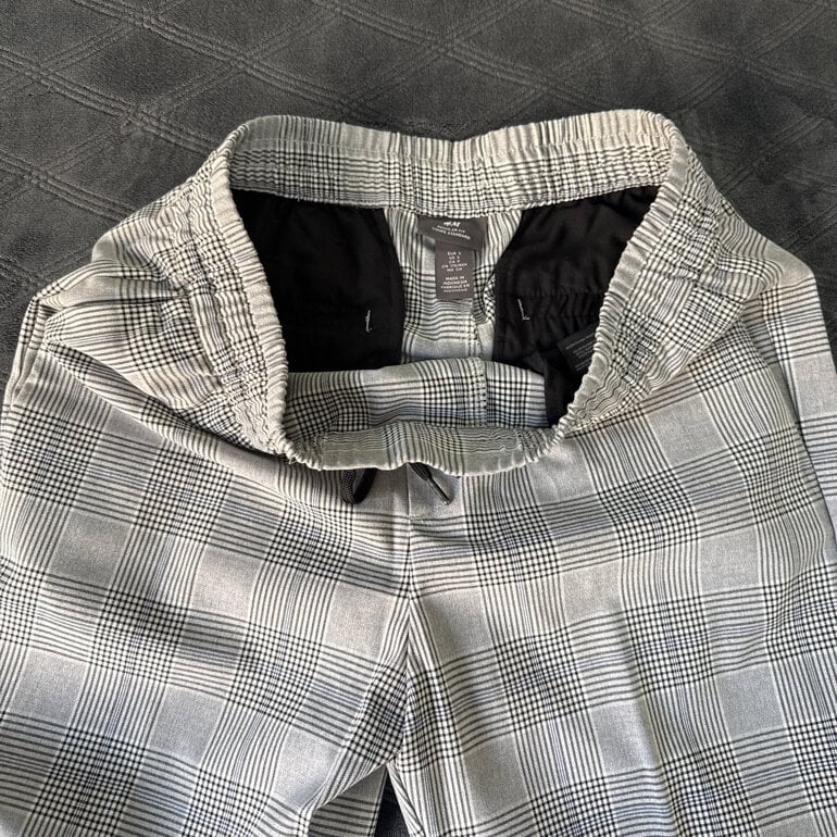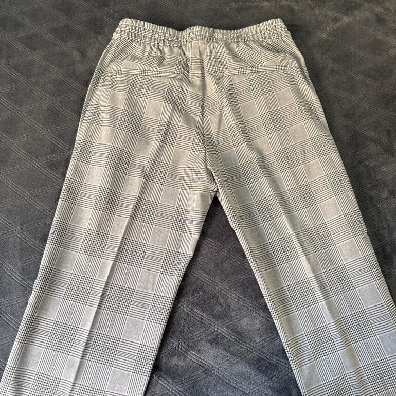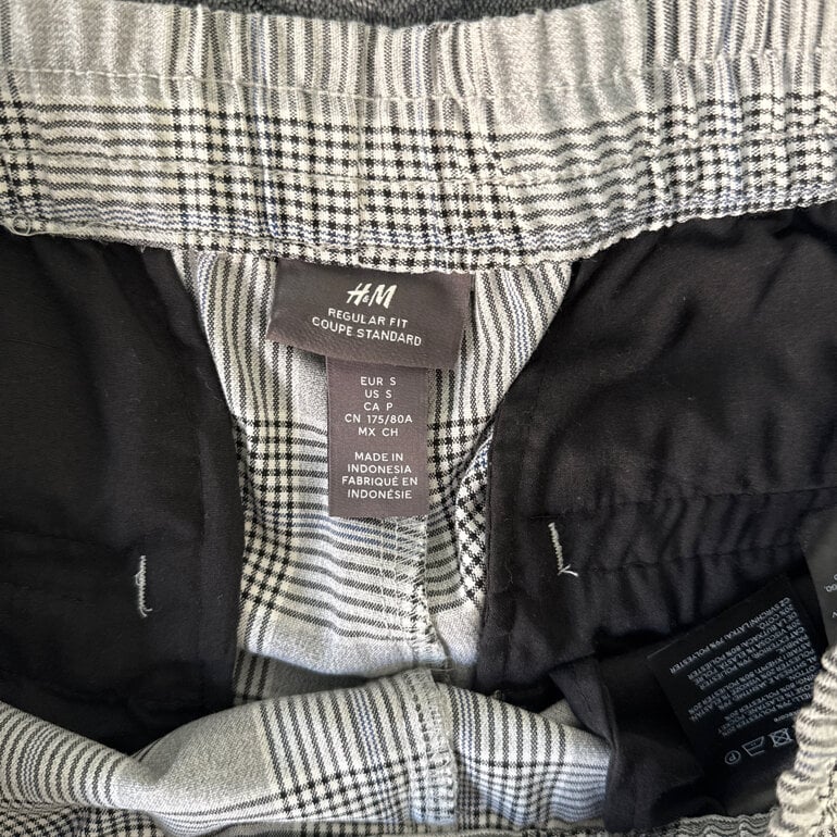 Es un Pantalón gris con rayas de H&M de la talla S con corte regular.