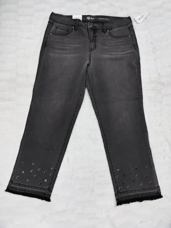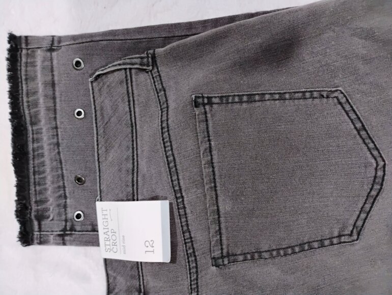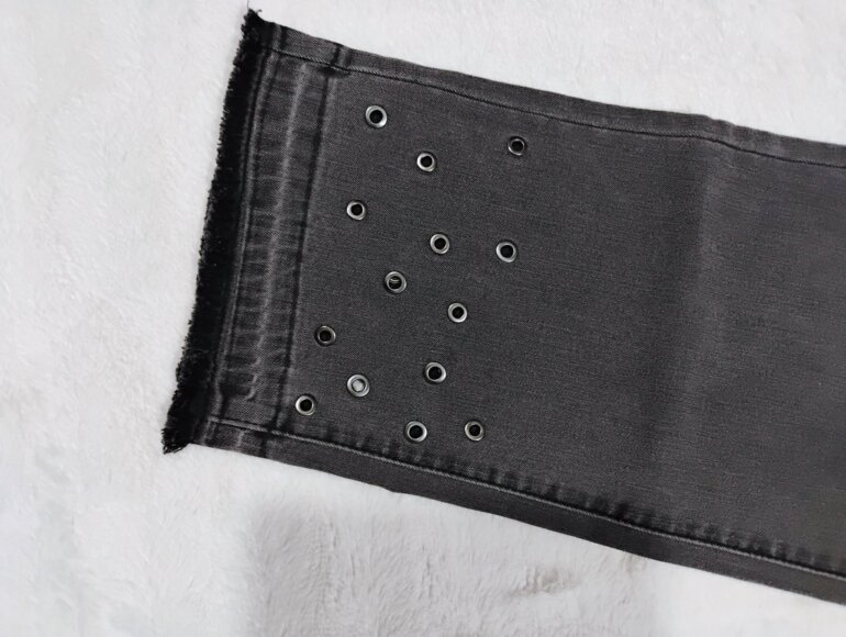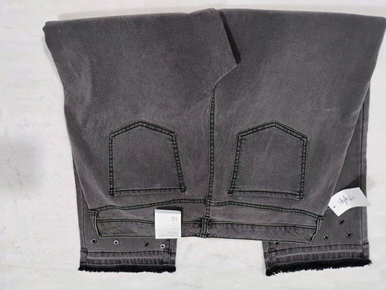 Pantalón strech gris, con ojales en terminado tipo skinny