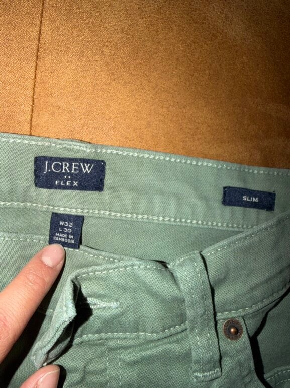 Pantalón J Crew Flex, Slim, tall W30 L33 verde militar en perfecto estado