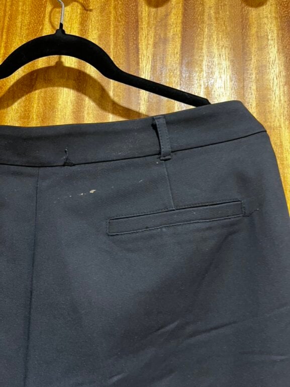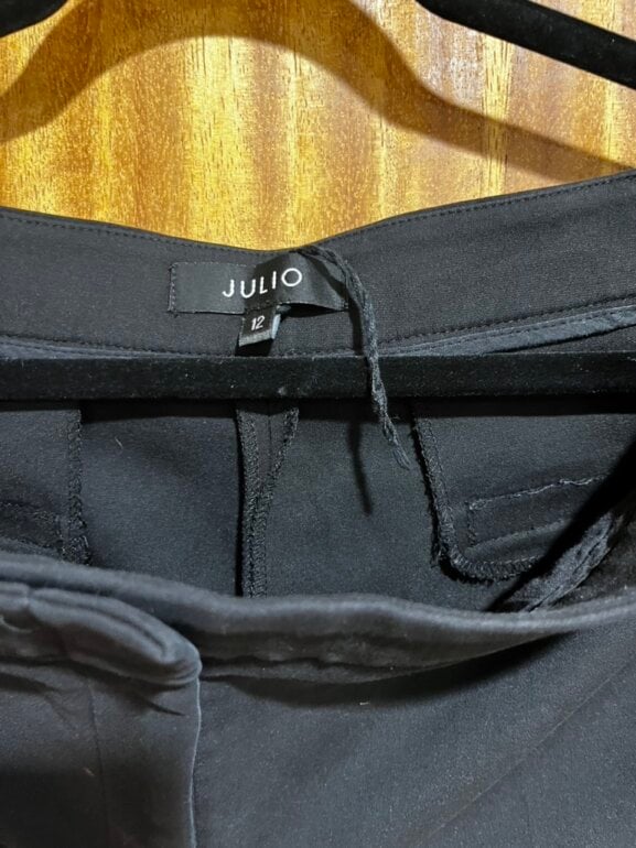 Pantalón negro marca julio de talla 10 tiene ciertos detalles de uso que se ven en las imágenes