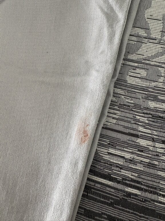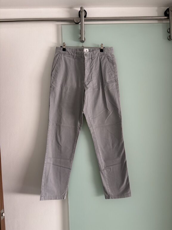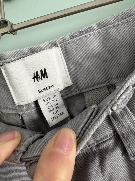 Pantalón recto de vestir color gris. Esta usado y tiene una mancha en la