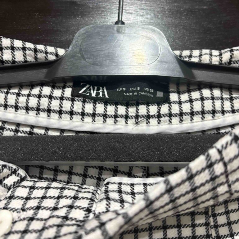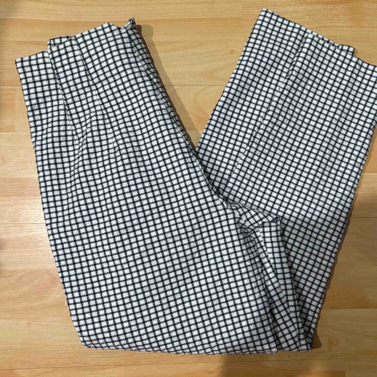 Pantalón tiro alto talla S, marca Zara. Cuadros blancos y negro. Sin detalles