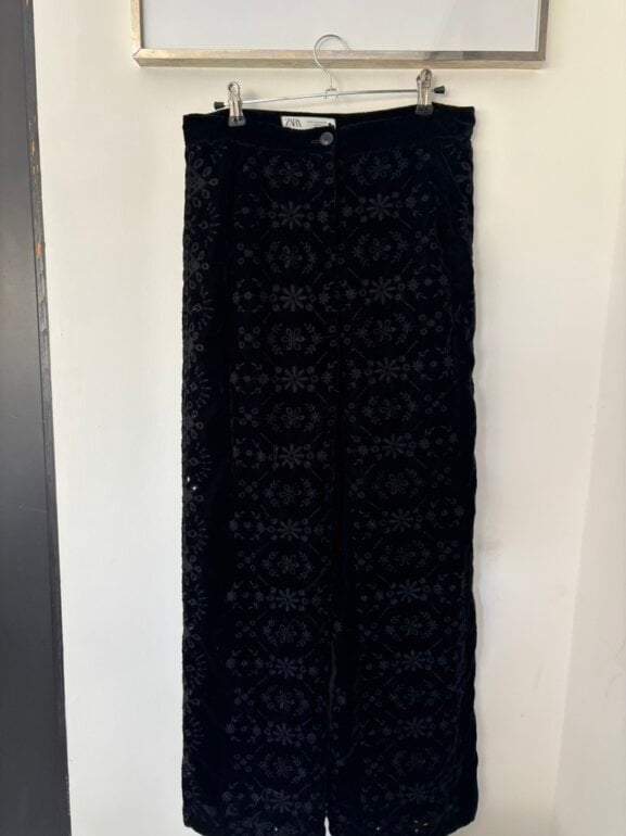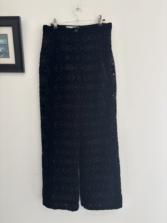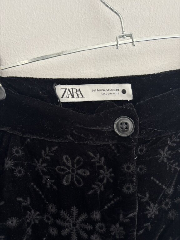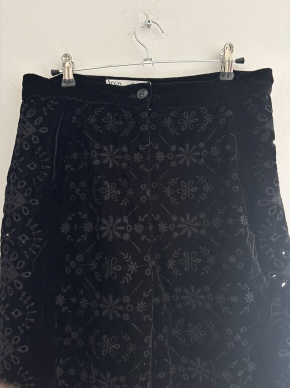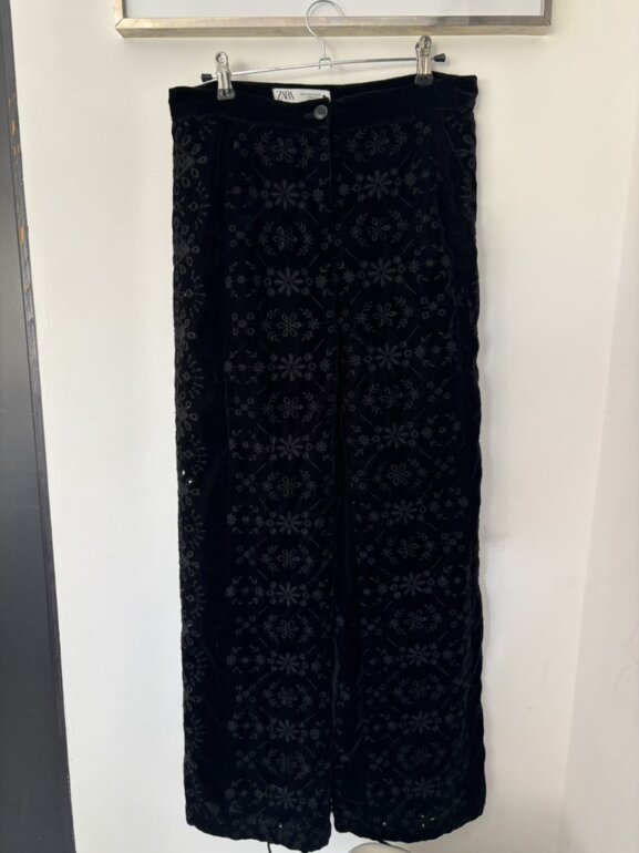Pantalón Zara negro sin usar z es de terciopelo con calado . Muy lindo . Es a la cintura y no estira