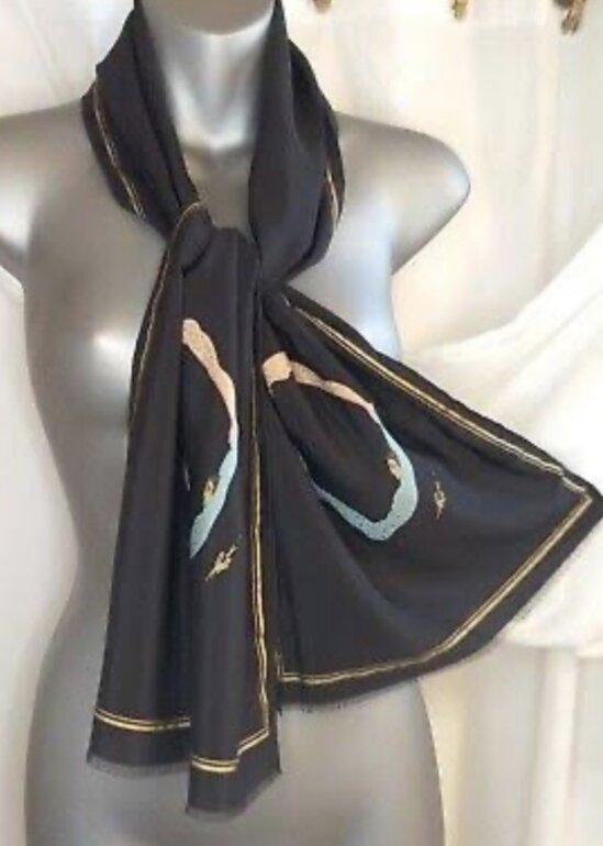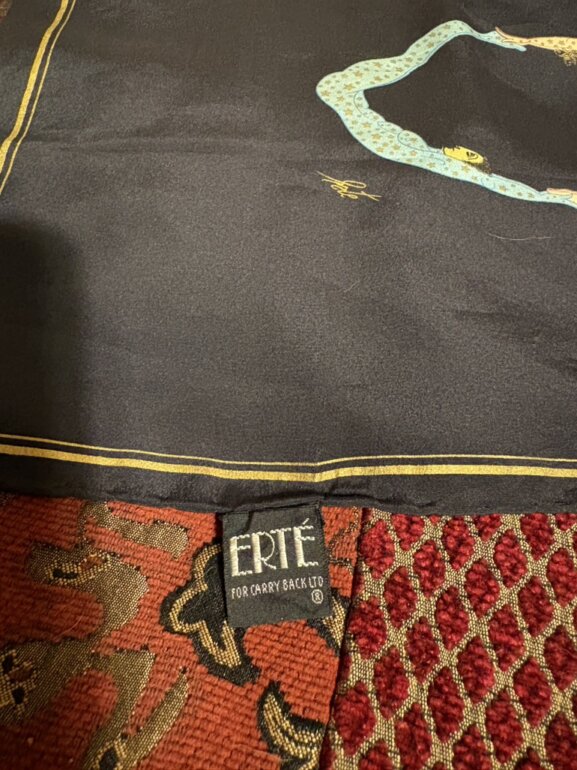 Es un diseño artístico del famoso ilustrador y diseñador de moda Romain de Tirtoff (Éter) conocido como el “padre de art Deco” esta pieza suele ser de la década de 1970 u 1980 fabricada en Italia, y caracterizada por su estilo elegante, colorido y temáticas teatrales o artísticas. Sus medidas son de 137 de largo y 30 de ancho