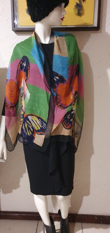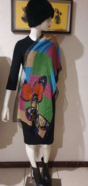 Hermoso pañuelo co motivos de mariposas que te aran ver jjuvenil y elegante y casual