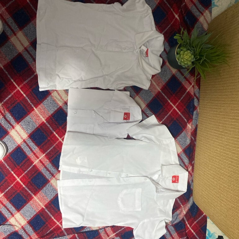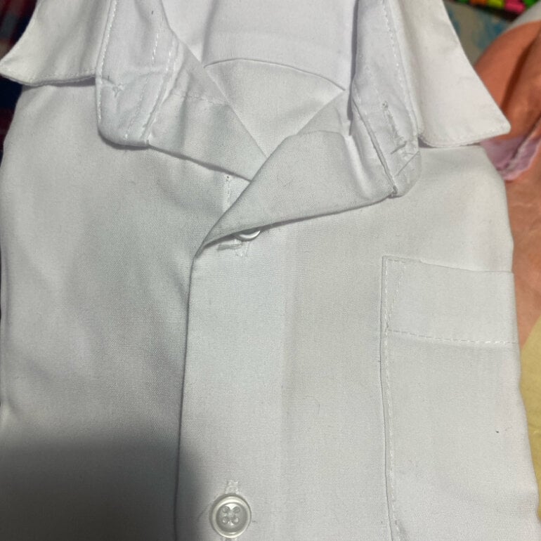 2 camisas blancas de botones manga corta y una tipo polo cuello en V también de manga corta talla 6 en perfecto estado solo una de las camisas tiene un poquito de bolitas pero nada que devalúe la tela y la presentación