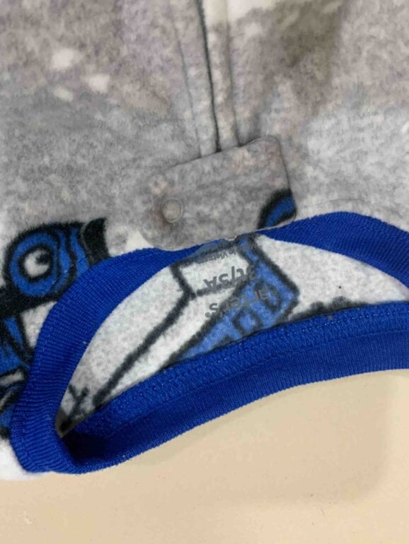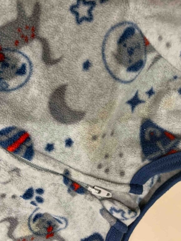 - Pijama de perritos gris cuenta con mancha
