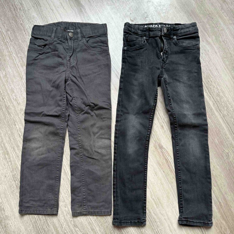 No tienen detalles. 1 de mezclilla y otro normal. Talla 6-7 años.