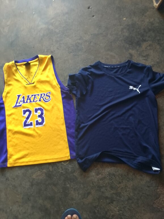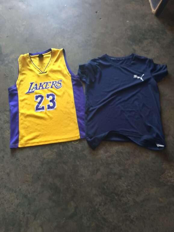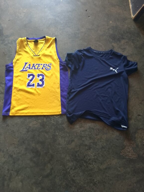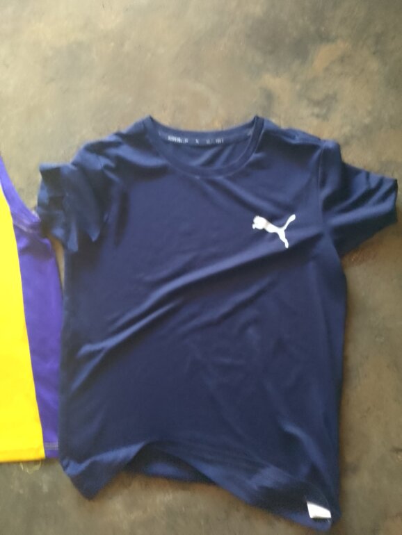 2playeras color amarilla y playera azul marino de puma una puesta de algodón con likra originales talla 12 a 13 años