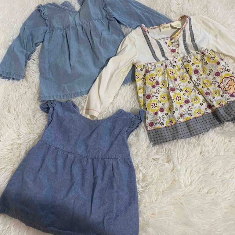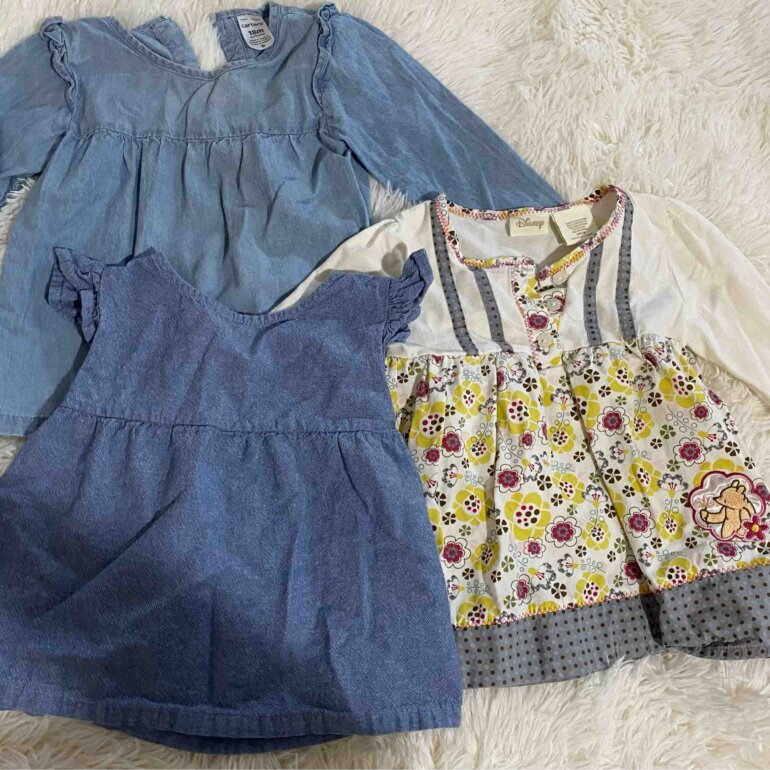 Paquete o set de 4 blusas de manga larga para niña de 1 año, marca carters y una Disney en excelente estado