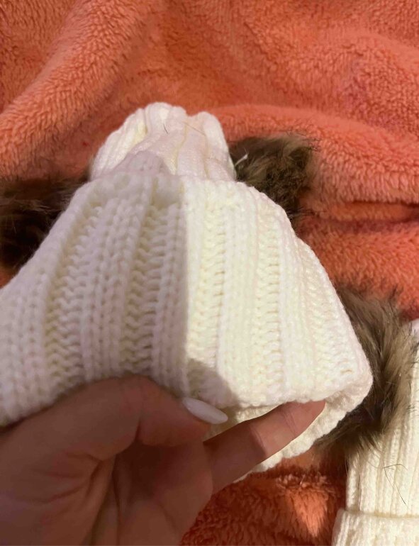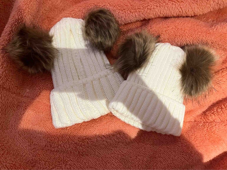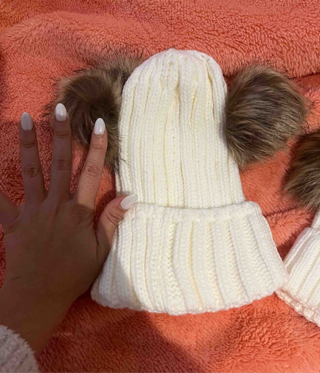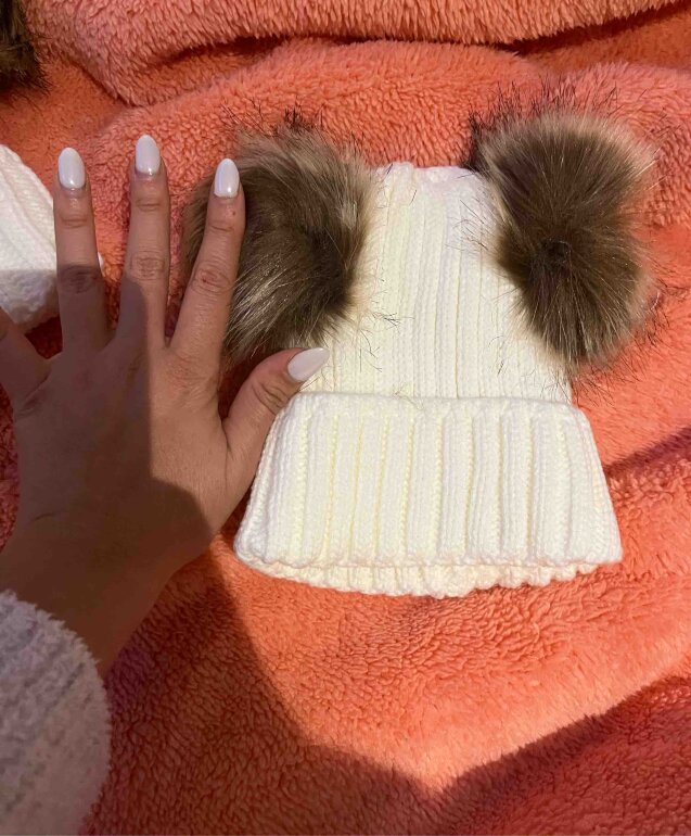 Divinos y divertidos gorros en tejido grueso para frío con 2 bolas esponjosas en color crudo para hacer match con tu princesa o príncipe 😍