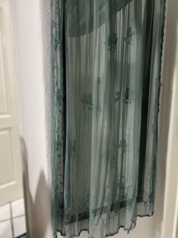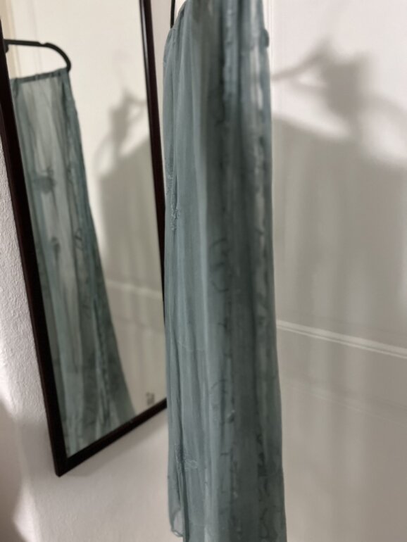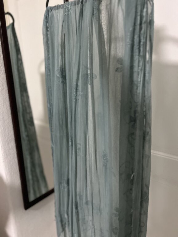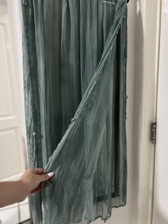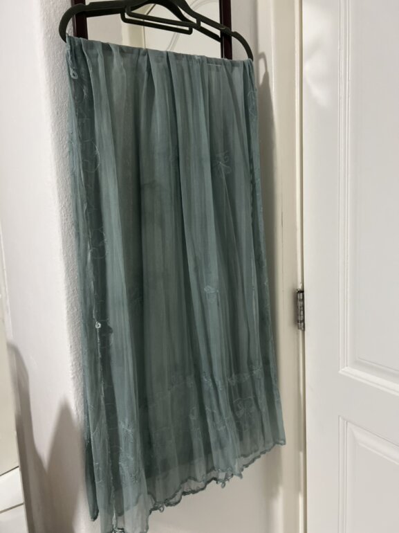 SEDA ELEGANTE PARA EVENTOS. Borde tejido a mano. Es bastante larga. Ideal para primavera-verano. Toño hermoso azulado. Italiana.